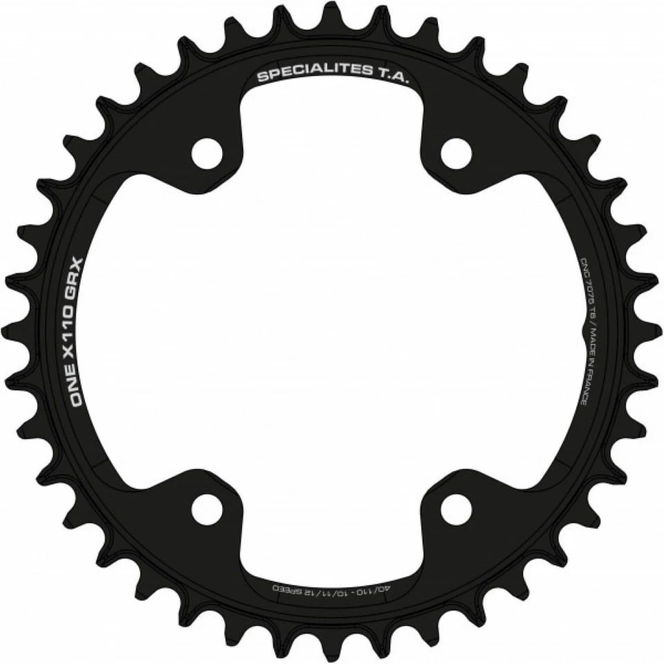 â Avec sa conception spĂ©cifique au gravier et sa durabilitĂ© robuste, le plateau TA One X110 GRX est un choix parfait de mise Ă niveau pour les cyclistes Ă©quipĂ©s de pĂ©daliers Shimano GRX 10/11/12 vitesses.